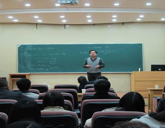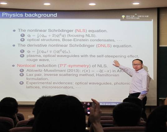3月29日,应万象城老虎机官方网站邀请,宁波大学贺劲松教授和中国科学技术大学叶郁教授来万象城在教学9号楼C101学术报告厅分别作了题为《Three types of Derivative nonlinear Schrödinger Type Equation and its nonlocal extension》和《Monomial A-infinity algebras》的学术报告。报告会由万象城老虎机官方网站院长李永祥教授主持,相关专业师生60多人参加了此次报告会。