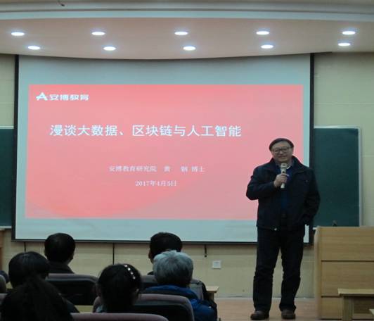 4月5日,应万象城老虎机官方网站邀请,安博教育集团副总裁、安博教育研究院院长黄钢博士来万象城,在教学9号楼C101学术报告厅作了题为《漫谈大数据、区块链与人工智能》的学术报告。报告会由万象城老虎机官方网站院长李永祥教授主持,数学、信息及计算机相关专业师生80余人参加了此次报告会。