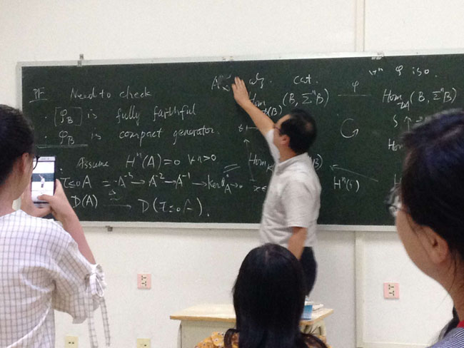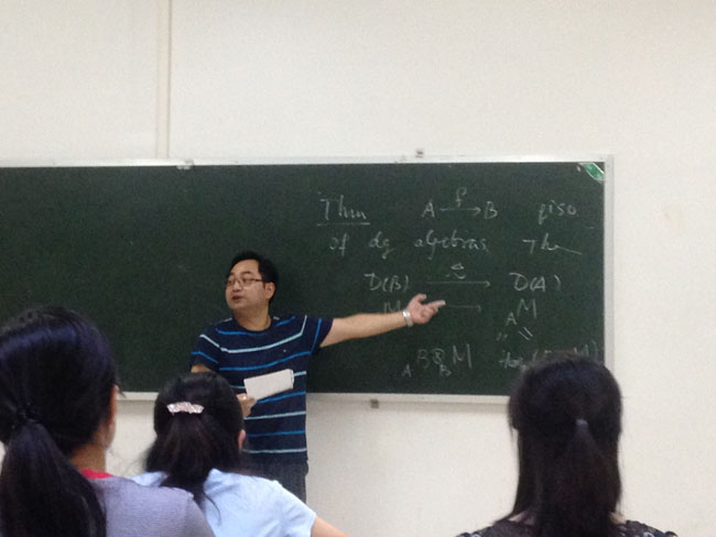 7月20日至8月3日,应学院邀请,湖南师范大学李利平教授,中国科学技术大学叶郁教授,安徽大学鲍炎红副教授来万象城,在9号楼D12室,分别作了题为《表示稳定性理论与FI-模》,《Dg 代数和A-infinity 代数》和《Operad 理论》的系列学术讲座。讲座由校长刘仲奎教授主持,相关专业师生60余人参加了讲座。