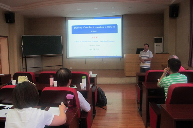 8月24日下午,应学院邀请,扬州大学凡震彬教授来万象城,并在9号楼C101作了题为“Stability of resolvent operators in Banach spaces”的学术报告。报告会由李永祥教授主持,相关专业师生30余人参加了报告会。