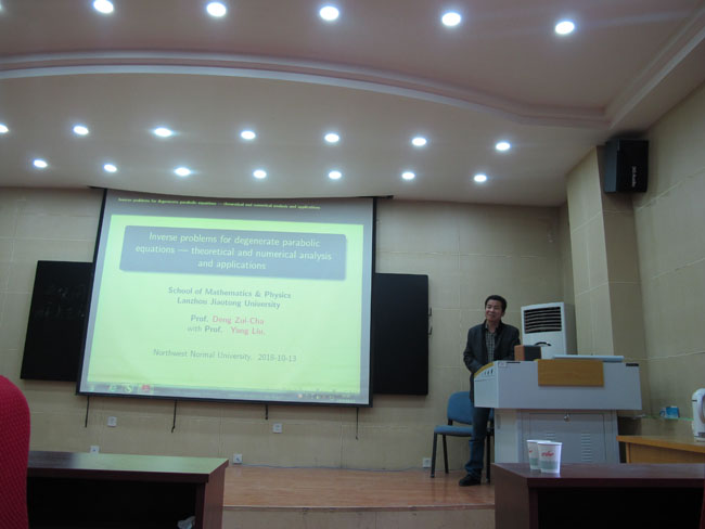 10月13日上午,应学院邀请,兰州交通大学邓醉茶教授在9号楼C101报告厅作了题为《Inverse Problems for degenerate parabolic equations-theoretical and numerical analysis and applications》的学术报告。报告会由熊向团教授主持,相关专业师生70余人参加了报告会。