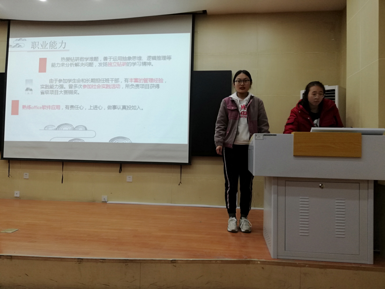 12月13日晚,万象城老虎机官方网站大学生职业生涯规划大赛决赛在9C101报告厅举行,来自大一至大三的12支团队参加了此次比赛。辅导员王回成、2015级数学与应用数学1班牛付喜同学、2016级数学与应用数学1班金婉怀同学担任大赛评委,比赛由2018级本科生王一丁、陈晨主持。