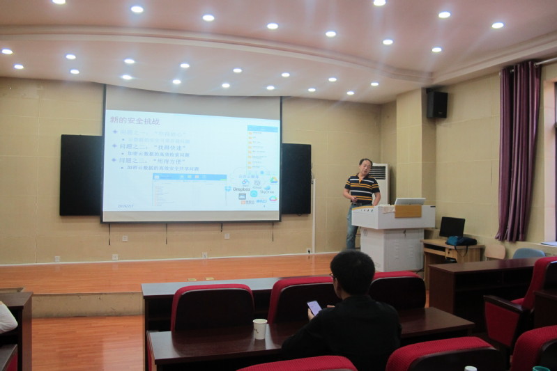 7月7日,应学院邀请,杭州师范大学陈克非教授来我校作了题为《基于ABE-PRE的数据共享》的学术报告。报告会由杜小妮教授主持,相关专业师生约40人参加了报告会。