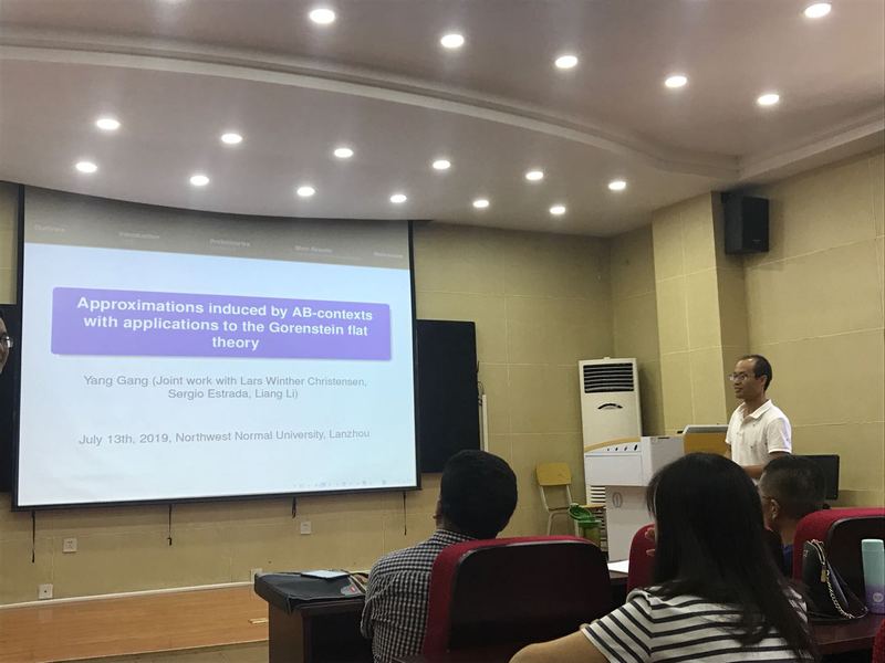 7月13日,应学院邀请,兰州交通大学杨刚教授来万象城进行学术交流,并在教学9号楼C101学术报告厅作了题为《Approximations induced by AB-contexts with applications to the Gorenstein flat theory》的学术报告。报告会由狄振兴副教授主持,相关专业师生40余人参加了此次报告会。