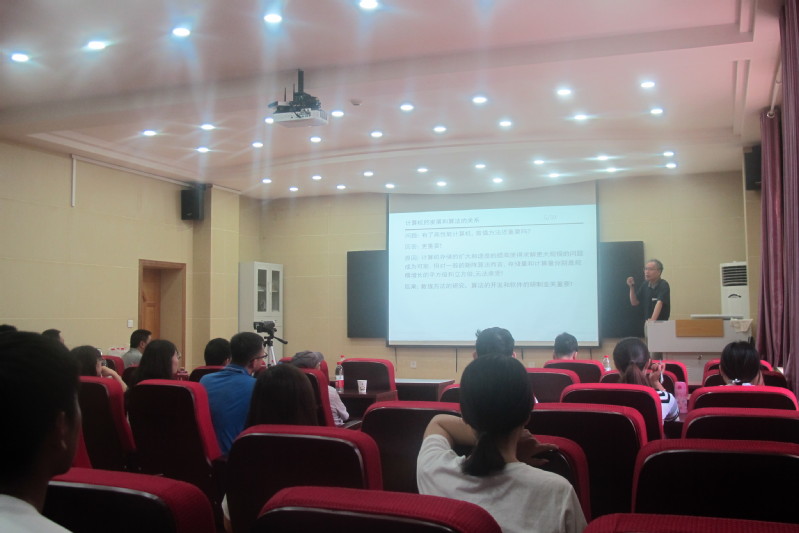7月16日至7月19日,应学院邀请,清华大学贾仲孝教授来万象城进行学术交流,并于7月17日上午在教学9号楼C101学术报告厅作了题为《大规模矩阵计算的数值方法》的学术报告。报告会由缪树鑫副教授主持,相关专业师生40余人参加了此次报告会。