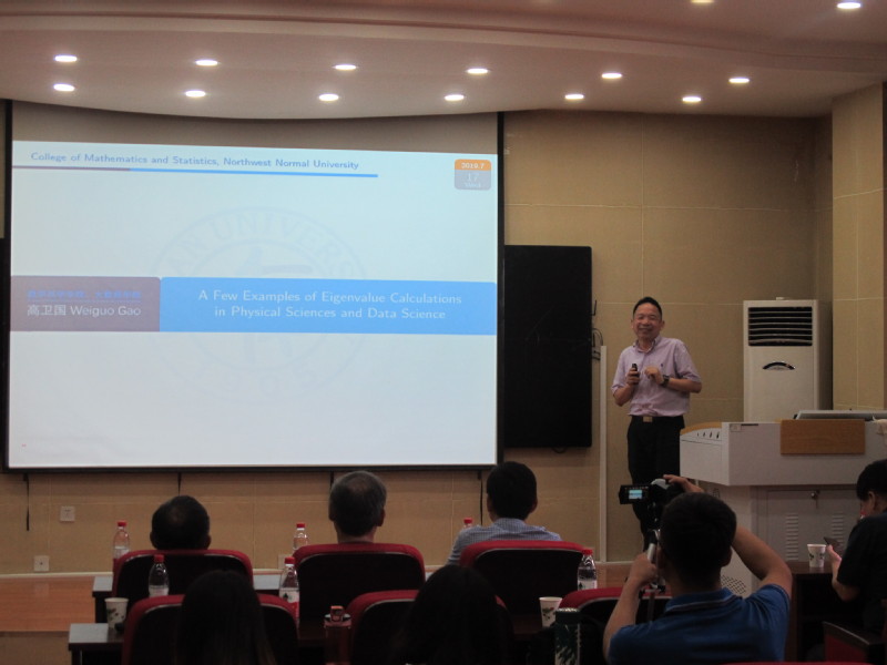 7月16日至7月19日,应学院邀请,复旦大学高卫国教授来万象城进行学术交流,并于7月17日晚在教学9号楼C101学术报告厅作了题为《从计算物质科学到数据科学中的若干特征值算法技巧》的学术报告。报告会由缪树鑫副教授主持,相关专业师生40余人参加了此次报告会。