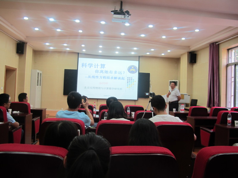 7月22日,应学院邀请,北京应用物理与计算数学研究所谷同祥研究员来万象城进行学术交流,并在教学9号楼C101学术报告厅作了题为《科学计算,你离她有多远?--从线性方程组求解谈起》的学术报告。报告会由缪树鑫副教授主持,相关专业师生40余人参加了此次报告会。