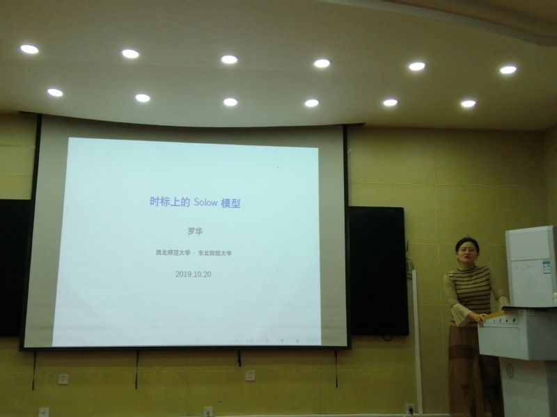 10月20日,应学院邀请,东北财经大学数学学院院长、博士生导师罗华教授莅临我校进行学术交流,并在教学9号楼C101学术报告厅作了题为《时标Solow模型》的的学术报告。报告会由李永祥教授主持,相关专业师生40余人参加了此次报告会。