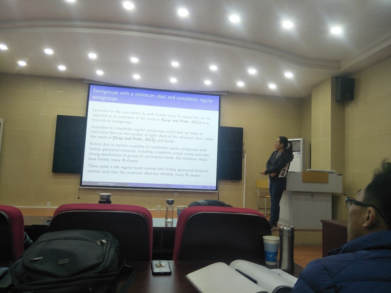 在报告中,杨丹丹教授主要介绍了半群上泛左同余提出的理论背景,以及报告人在泛左同余相关公开问题研究中取得的主要成果。同时,结合自己的研究工作经历,杨丹丹教授分享了自己的研究体会。报告结束后,杨丹丹教授就与会师生提出的相关问题作了解答,并与学院师生进行了广泛的交流和讨论。