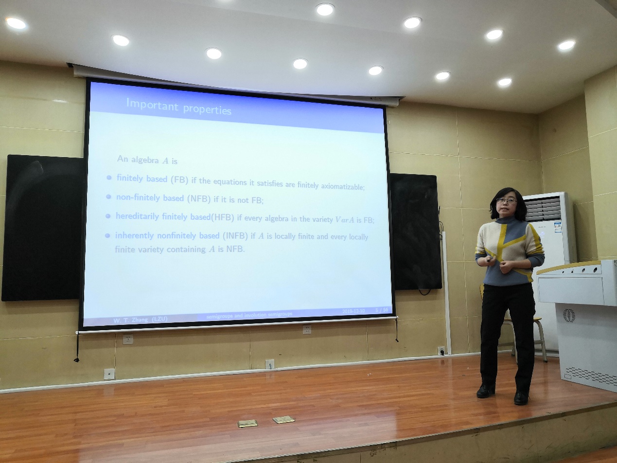 12月10日下午,应学院邀请,兰州大学万象城老虎机官方网站张文婷副教授莅临万象城进行学术交流,在九号楼C101学术报告厅作了题为《The finite basis problems for semigroups and involution semigroups》的学术报告。报告会由乔虎生教授主持,相关专业师生20余人参加了此次报告会。