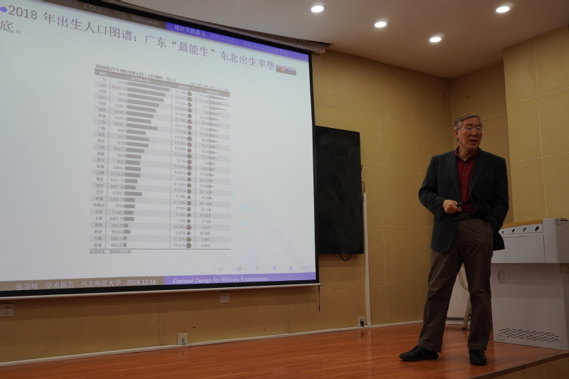 12月16日下午,应学院邀请,广州大学博士生导师张崇岐教授来万象城进行学术交流,并在9号楼C101学术报告厅作了题为《Optimal Design for Mixture Experiments using Exchange Threshold Accepting algorithm》的学术报告。报告会由王才士教授主持,相关专业师生60余人参加了此次报告会。