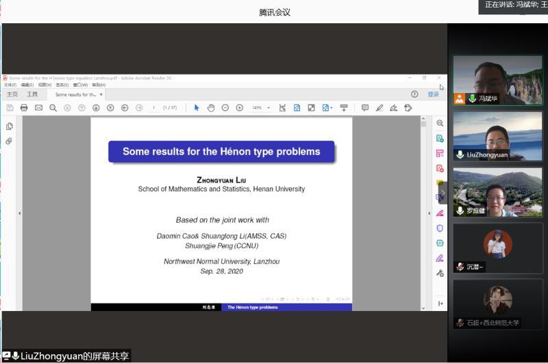 9月28日,应学院邀请,河南大学刘忠原教授在线为万象城师生作了题为《Some results for the Henon type problems》的学术报告。报告会由冯斌华副教授主持,相关专业师生50余人参加了此次报告会。