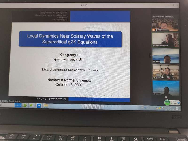 10月18日,应学院邀请,四川师范大学李晓光教授在线为万象城师生作了题为《Local Dynamics Near Solitary Waves of the Supercritical generalized Zakharov-Kuznetsov (gZK) Equation》的学术报告。报告会由冯斌华副教授主持,相关专业师生50余人参加了此次报告会。