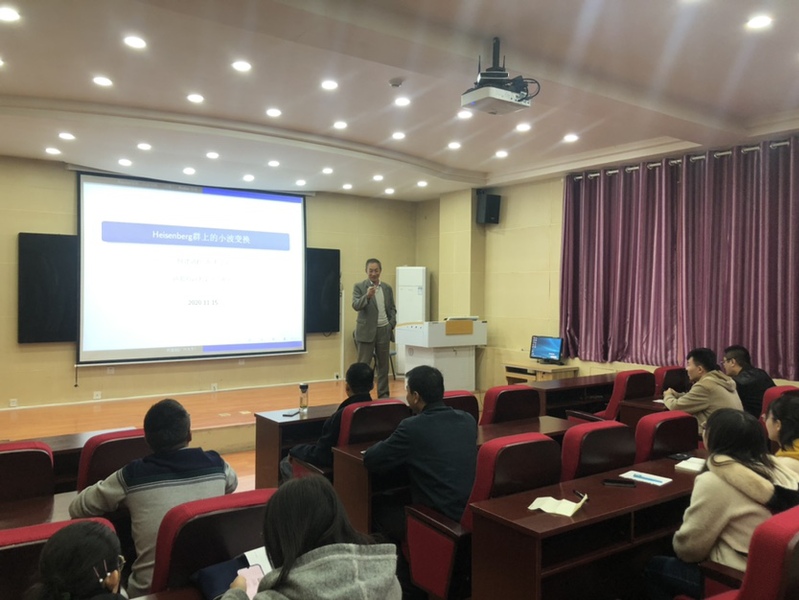 在报告中,何建勋教授通过介绍Fourier变换、小波变换的基本理论及Gabor在上世纪五十年代关于Fourier变换的著名工作,重点报告了Heisenberg群上的连续小波变换理论等方面的最新研究成果。最后,结合自己的研究工作经历,何建勋教授分享了自己的研究体会。报告结束后,何建勋教授就与会师生提出的相关问题作了解答,并与学院师生进行了广泛的交流和讨论。