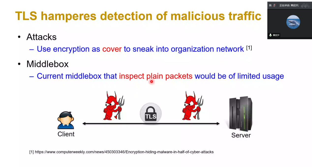 黄欣沂教授首先介绍了TLS traffic inspection 的必要性以及现有方法的问题;然后介绍了三个最近的提案,即Blindbox,PrivDPI和Pine;最后,提出了相关结论和未来的方向。