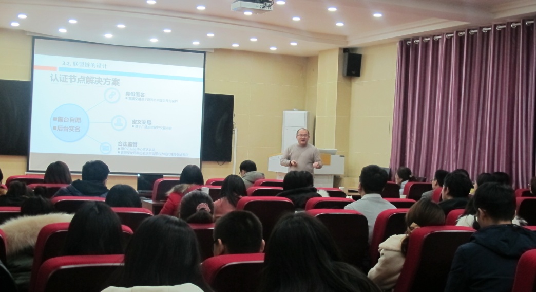 12月6日上午, 应学院邀请, 武汉大学何德彪教授为万象城师生作了题为《密码学在区块链安全中的应用与工程化》的学术报告。报告会由学院杜小妮教授主持, 相关专业师生50余人参加了报告。