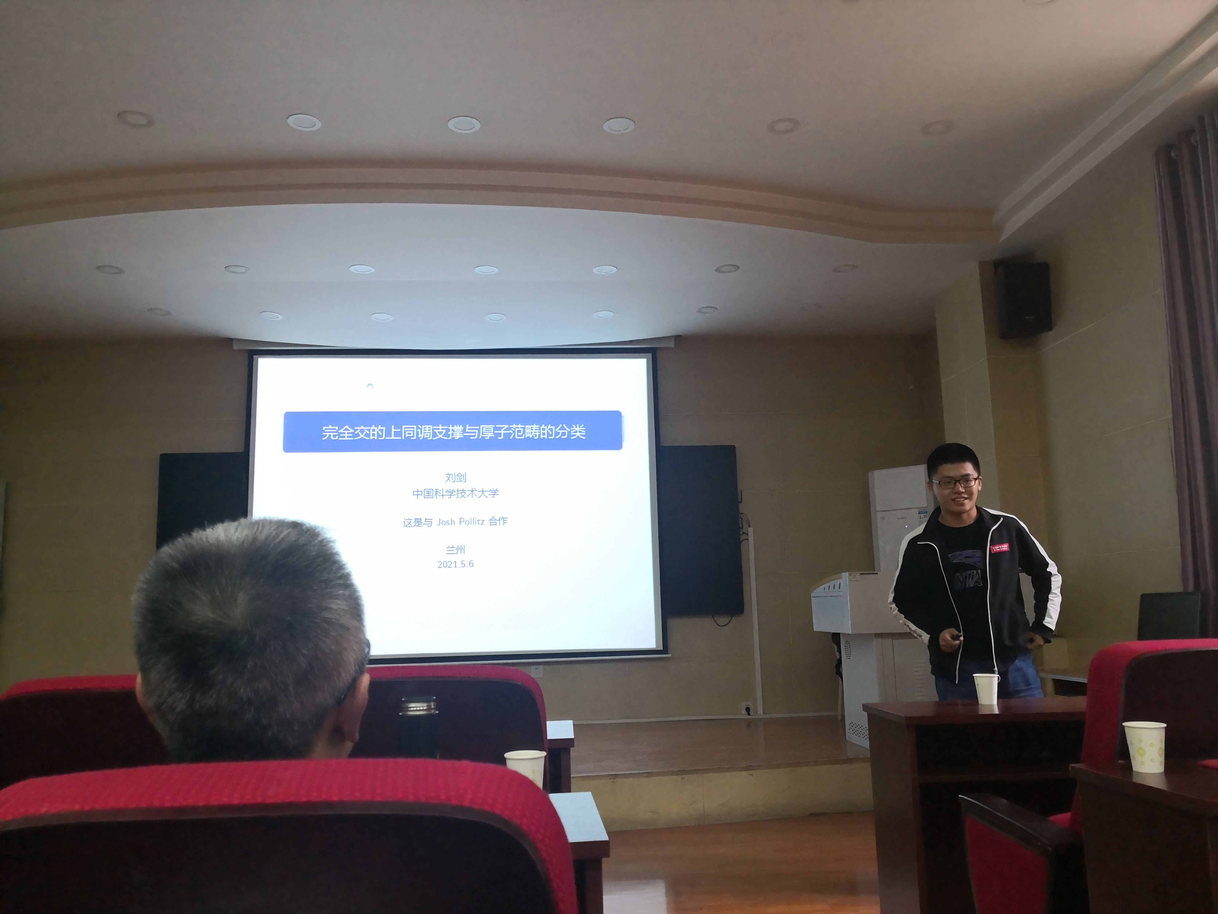 5月6日,应学院邀请,中国科学技术大学刘剑博士为万象城师生作了题为《完全交的上同调支撑与厚子范畴的分类》的学术报告。报告会由杨晓燕教授主持,相关专业师生30余人参加了报告。