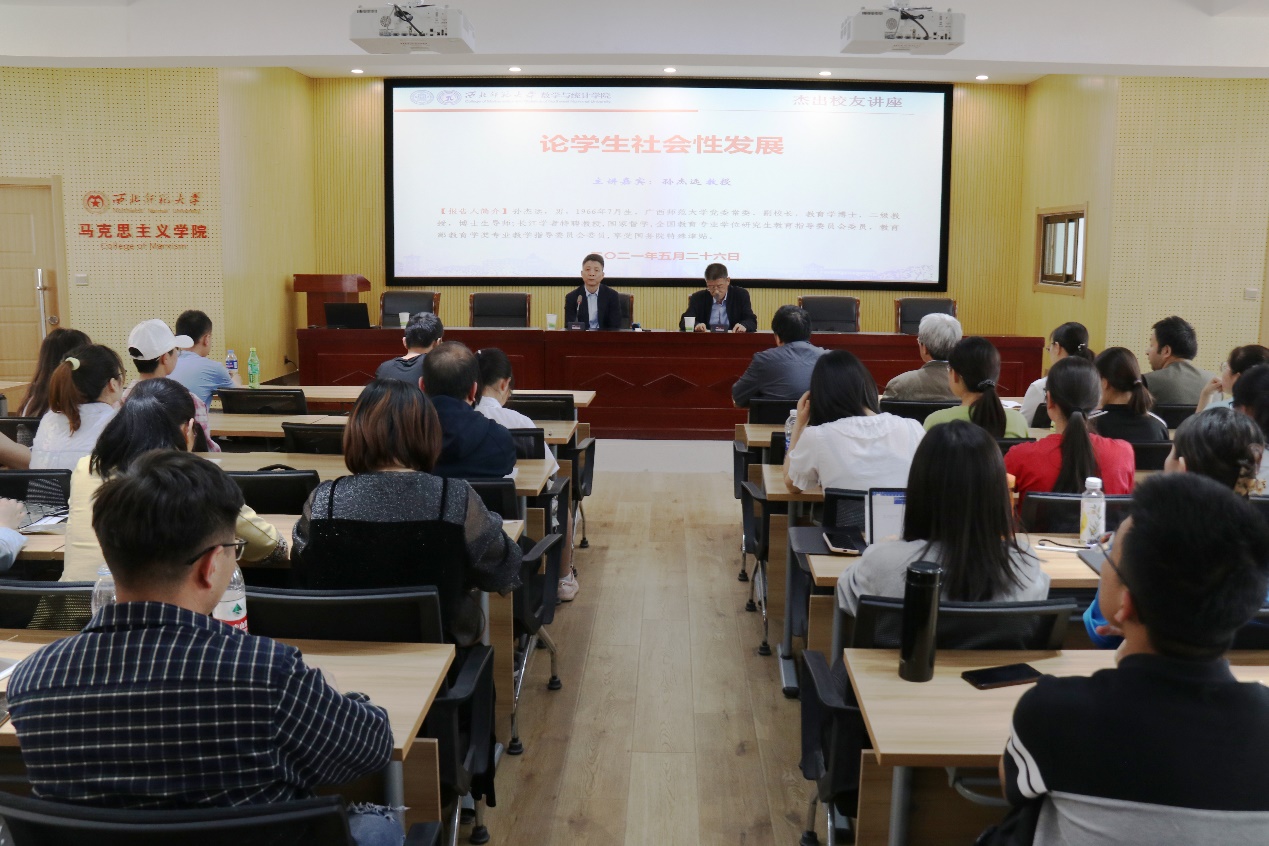 孙杰远教授的讲座以《学生社会性及其发展》为题,从一般人的社会性辨析和界定的基础上,分析了学生社会性发展的内涵与特征,提出了学生社会性发展的教育、教学策略,并认为教育的核心目标在于促成学生的全面发展,使其成为符合社会需要的人,教育过程中必须关注学生社会性的塑造和发展。