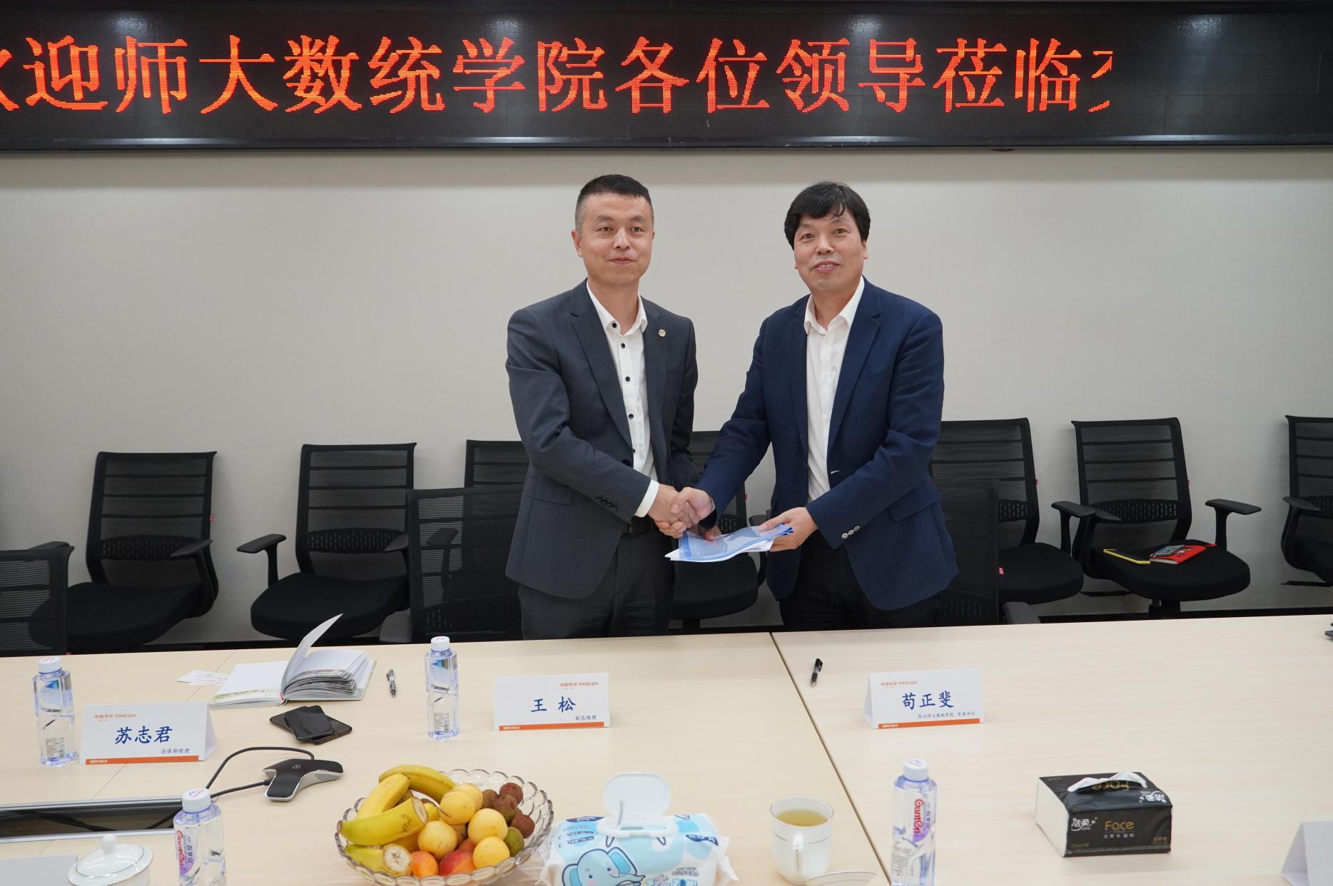 王松对苟正斐一行的到来表示热烈的欢迎,他指出,万象城老虎机官方网站万象城老虎机官方网站是省内来我司首家参访并洽谈校企合作的学院,希望学院能够输送更多数学相关专业的优秀毕业生到企业发展,期待数统的专业精神与平安的创新精神融合形成新型人才培养模式。