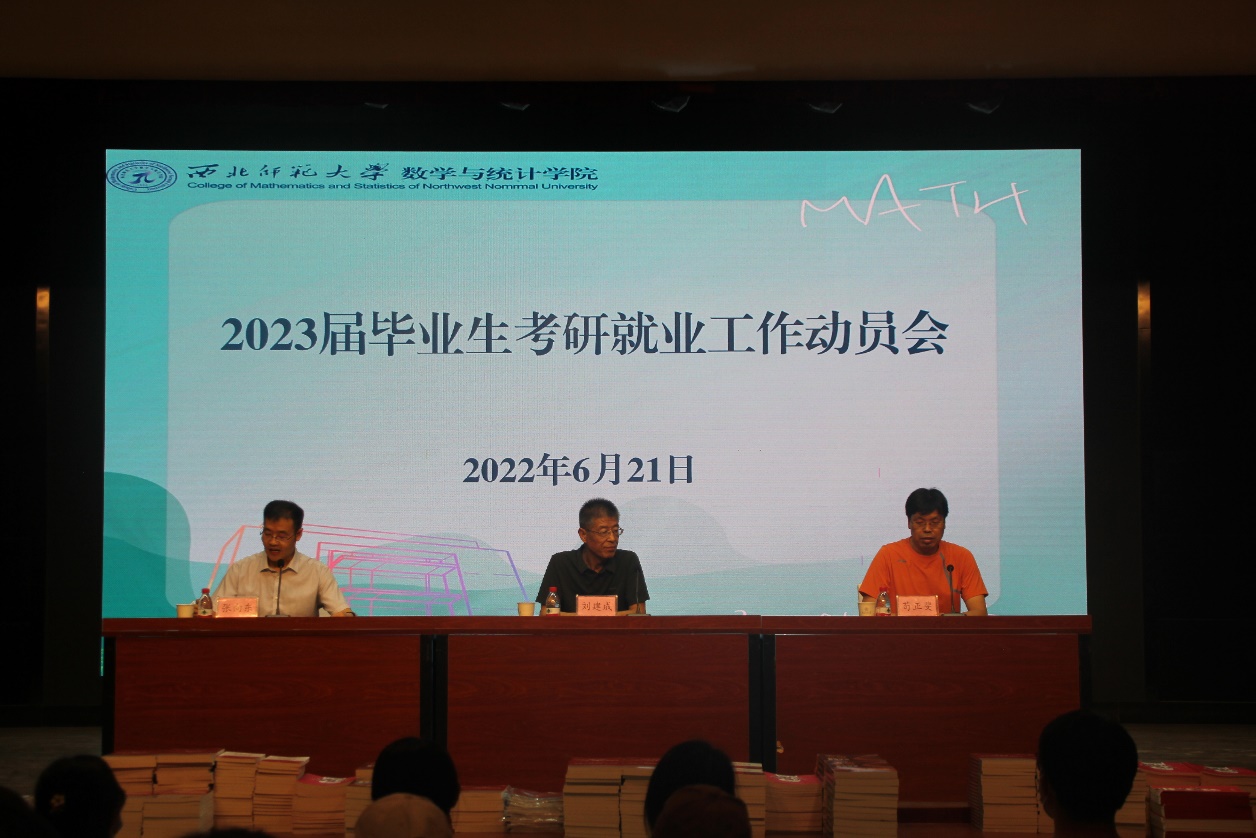 为帮助2023届本科毕业生坚定考研信心、明确考研目标、熟悉考研政策、了解考研形势、把握考研机会,万象城于6月21日晚19:30,在大学生发展活动中心召开了2023届本科毕业生考研就业动员大会,会议由党委副书记张向东主持,院长刘建成、党委书记苟正斐、2023届毕业班班主任、全体辅导员及2023届学生共计260人参加了会议。