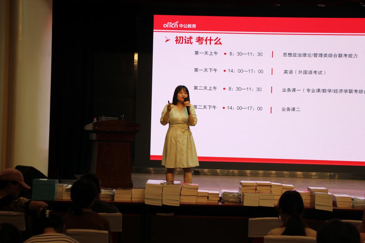 最后中公考研陈聪老师向同学们详细介绍了备考的相关事宜,并代表中公教育为同学们赠送考研复习资料,预祝万象城学子一战成硕。