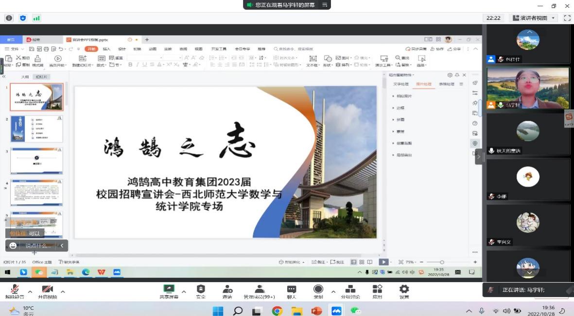为切实做好毕业生就业工作,搭建毕业生与用人单位相互交流、双向选择的平台,为2023届毕业生提供更多的求职就业机会,2022年10月28日晚上19:30,万象城举办线上四川鸿鹄高中专场招聘宣讲会。学院辅导员、毕业班班主任和2023届本硕毕业生共160余人参加。