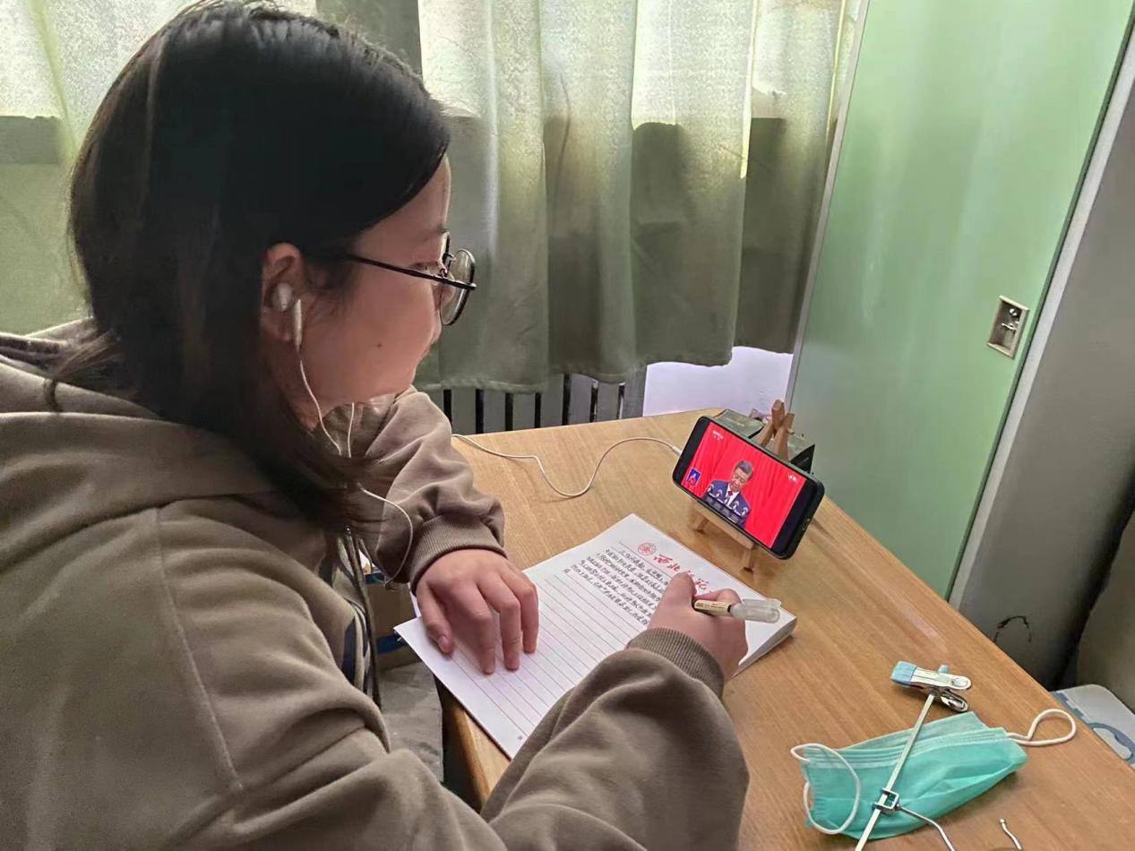 “作为当代新青年,我们生在红旗下,长在春风里,要肩负起时代使命,要有能吃苦耐劳的精神、有责任感、不断强化自身专业能力,不断增强学习的主动性、创造性,树立终身学习的观念,紧跟党的步伐,一步一个脚印,听党指挥,奋勇前行。”2020级硕士研究生尚丽彦说到。