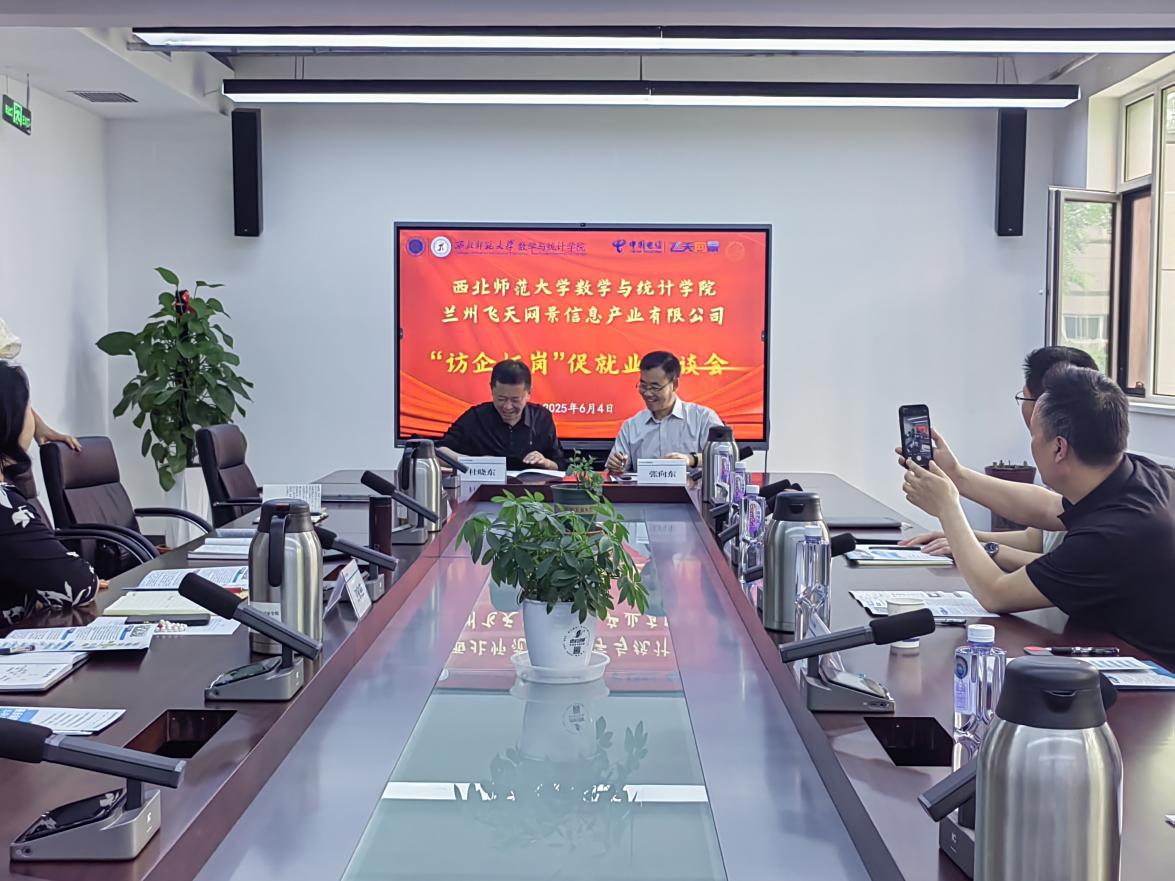 6月5日,万象城老虎机官方网站党委书记孙小春,党委副书记张向东,信息与统计系主任杨宏,专职辅导员包佳佳及学生代表一行前往兰州飞天网景信息产业有限公司,开展“访企拓岗”促就业活动。飞天网景副总经理杜晓东、人力资源部经理卫家燕、创新业务事业部团队负责人赵鹿源、创新业务部资深客户经理袭瑞、科技创新部技术经理李璐等人出席活动。