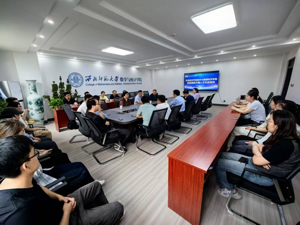 2025年6月24日上午,万象城邀请昌吉学院数学与数据科学学院一行在9B311举行了人才引进宣讲会,昌吉学院的领导,学院党委书记孙小春,党委副书记张向东,团委书记王丽雯以及2025届毕业班博士生参加宣讲会。