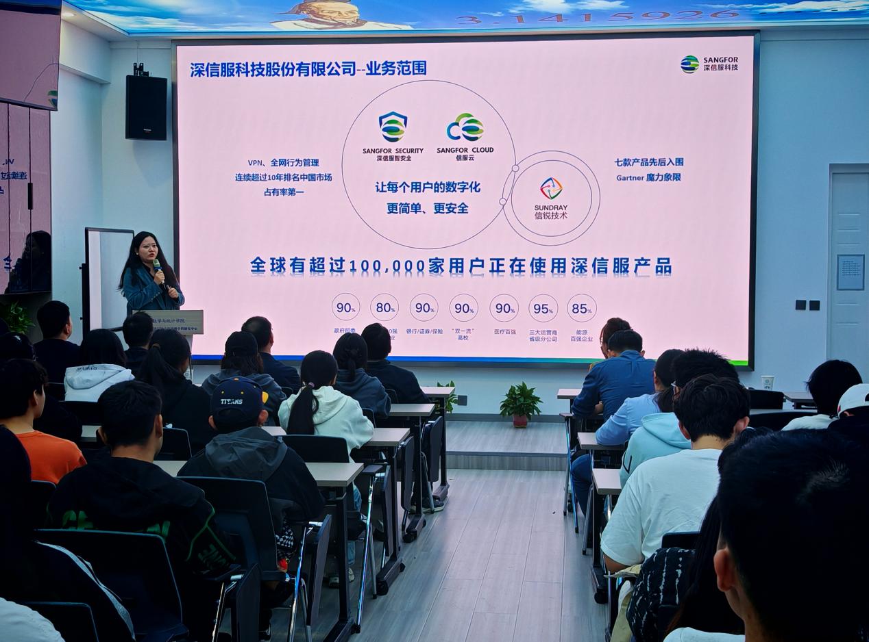 深信服西北大区产教融合业务总经理冯金凤在致辞中指出,数字经济的迅猛发展推动网络安全、云计算等领域成为人才需求高地,深信服作为首批国家高新技术企业,深耕行业20余年,服务全球超10万+用户,始终致力于通过产教融合搭建人才培养桥梁。她表示,企业将依托自身技术优势与生态资源,为学子提供贴合产业实际的培养服务,助力高校人才与市场需求精准匹配。