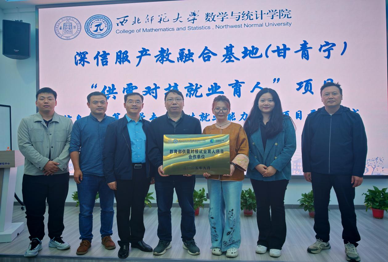 最后,学院与深信服产教融合基地(甘青宁)共同完成揭牌签约仪式,双方代表合影留念,标志着校企在人才培养与就业服务领域的深度合作正式启动。