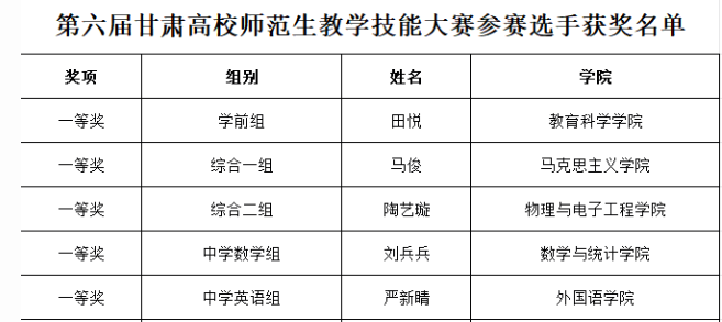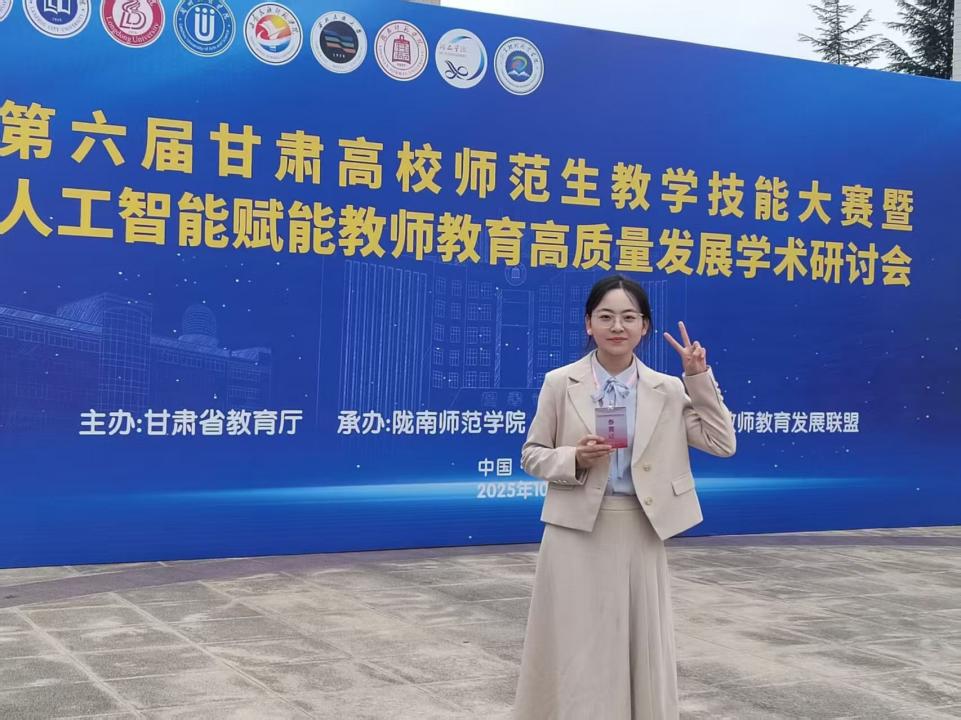 10月18日,在由甘肃省教育厅主办,陇南师范学院承办,甘肃省新时代教师教育发展联盟协办的第六届甘肃高校师范生教学技能大赛中,万象城2022级师范生刘兵兵获得了中学数学组一等奖,为学校和学院取得了荣誉,指导教师徐玲老师获得优秀指导教师奖。